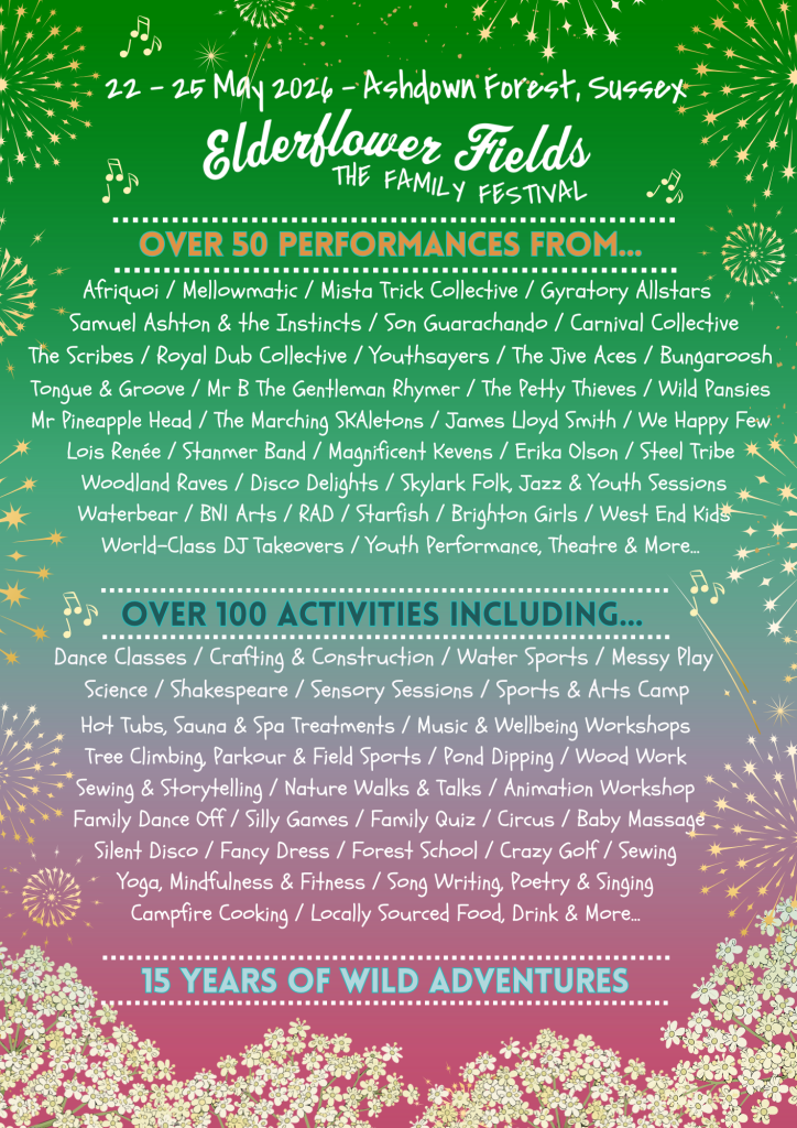 Celebrate 15 years of magic with us. Listen to the Sounds of Elderflower Fields 2026 and see who’s performing by day here.